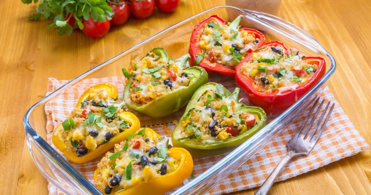 Πιπεριές γεμιστές με κινόα και μαύρα φασόλια