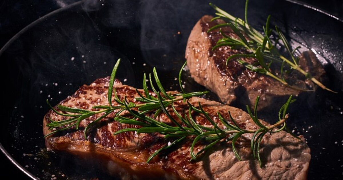 Όταν θέλετε να τις μαγειρέψετε, τις βγάζετε από τη μαρινάδα, τις σκουπίζετε με απορροφητικό χαρτί ψησίματος και τις ψήνετε σε μαντεμένιο τηγάνι, που έχετε ζεστάνει σε μέτρια προς δυνατή φωτιά μέχρι να αρχίσει να καπνίζει. Τις ψήνετε από 1 λεπτό σε κάθε πλευρά να κάνουν κρούστα και να αρχίσουν να βγάζουν το λίπος τους στο τηγάνι. Στη συνέχεια χαμηλώνετε τη φωτιά σε μέτρια και συνεχίζετε το ψήσιμο για 8-10 λεπτά γυρνώντας τις μπριζόλες τακτικά.