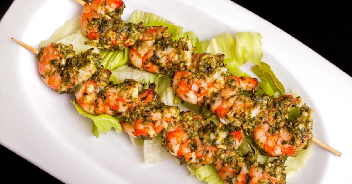 Περάστε τις γαρίδες σε σουβλάκια (προαιρετικά).