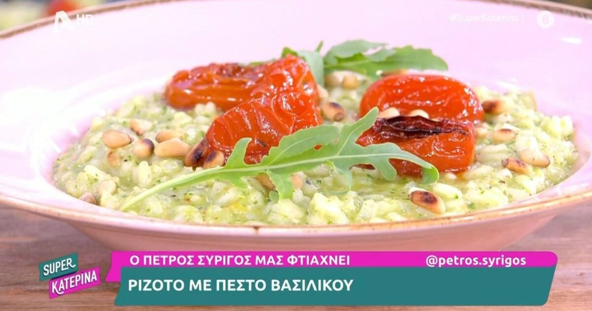 Ο Πέτρος Συρίγος μάς ετοιμάζει ριζότο με πέστο βασιλικού!