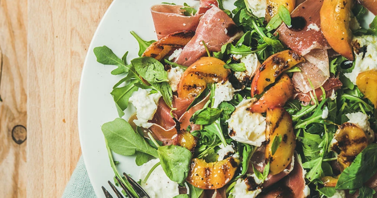 Σαλάτα ρόκα με προσούτο, ροδάκινο και μοτσαρέλα