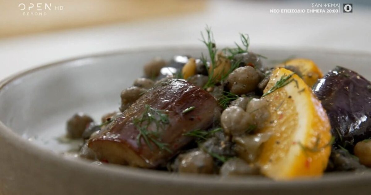 Συνταγή για ρεβυθάδα, μελωμένη με μελιτζάνες