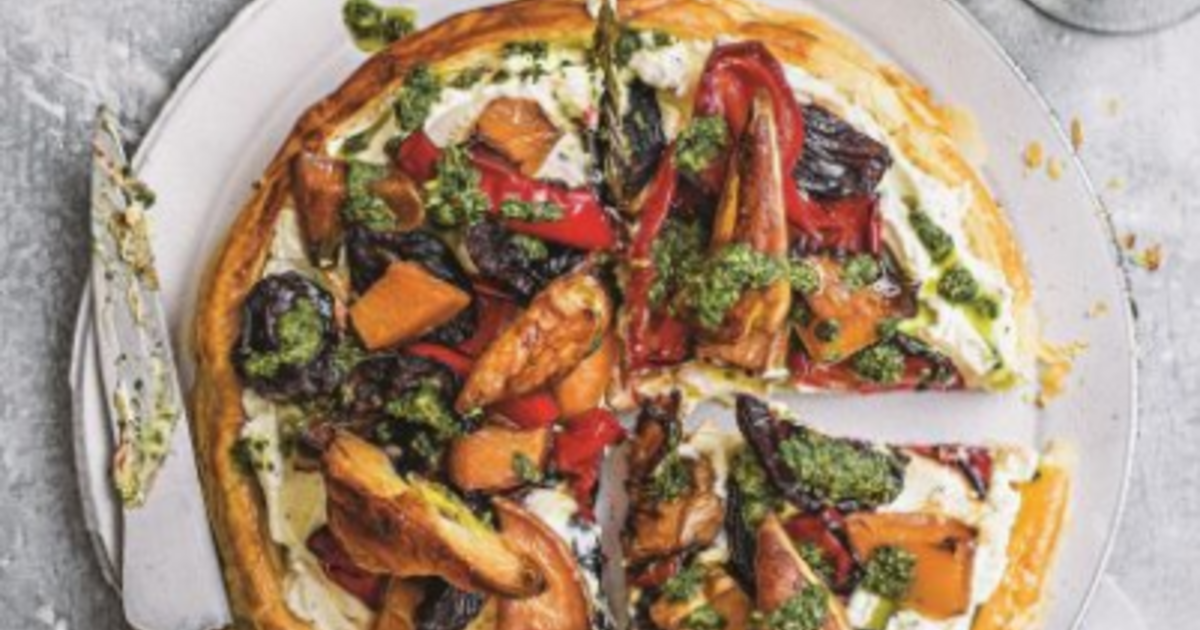 Τάρτα με ψητά λαχανικά και πράσινη σάλτσα