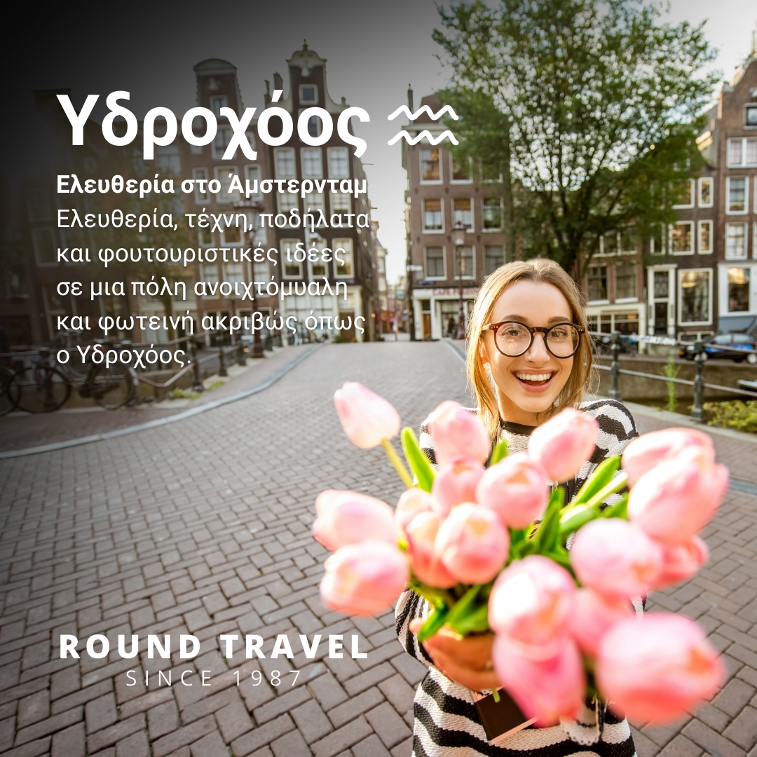 Ελεύθερη σκέψη, δημιουργικότητα και πρωτοποριακή κουλτούρα. Το Άμστερνταμ, με τα κανάλια, τα ποδήλατα και την ανοιχτόμυαλη ενέργειά του, είναι ο ιδανικός προορισμός για έναν Υδροχόο.