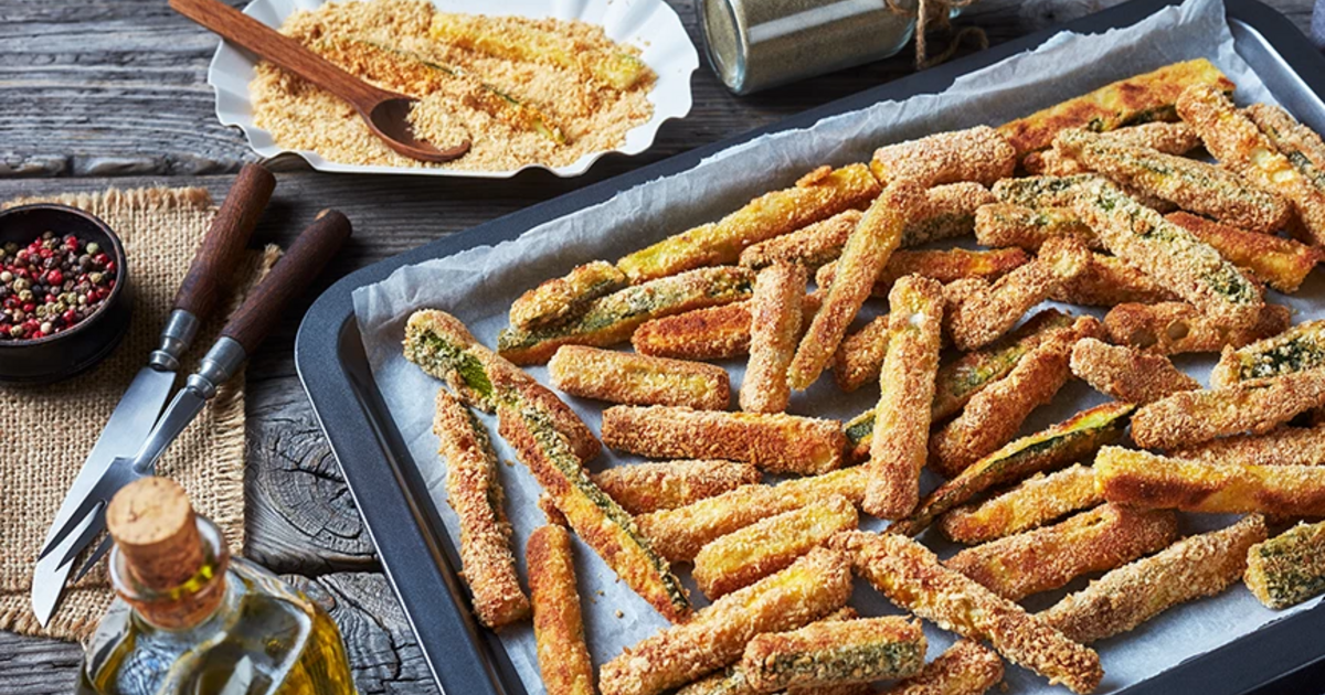 «Τηγανητά» κολοκυθάκια στο φούρνο με κρούστα από πάνκο και παρμεζάνα