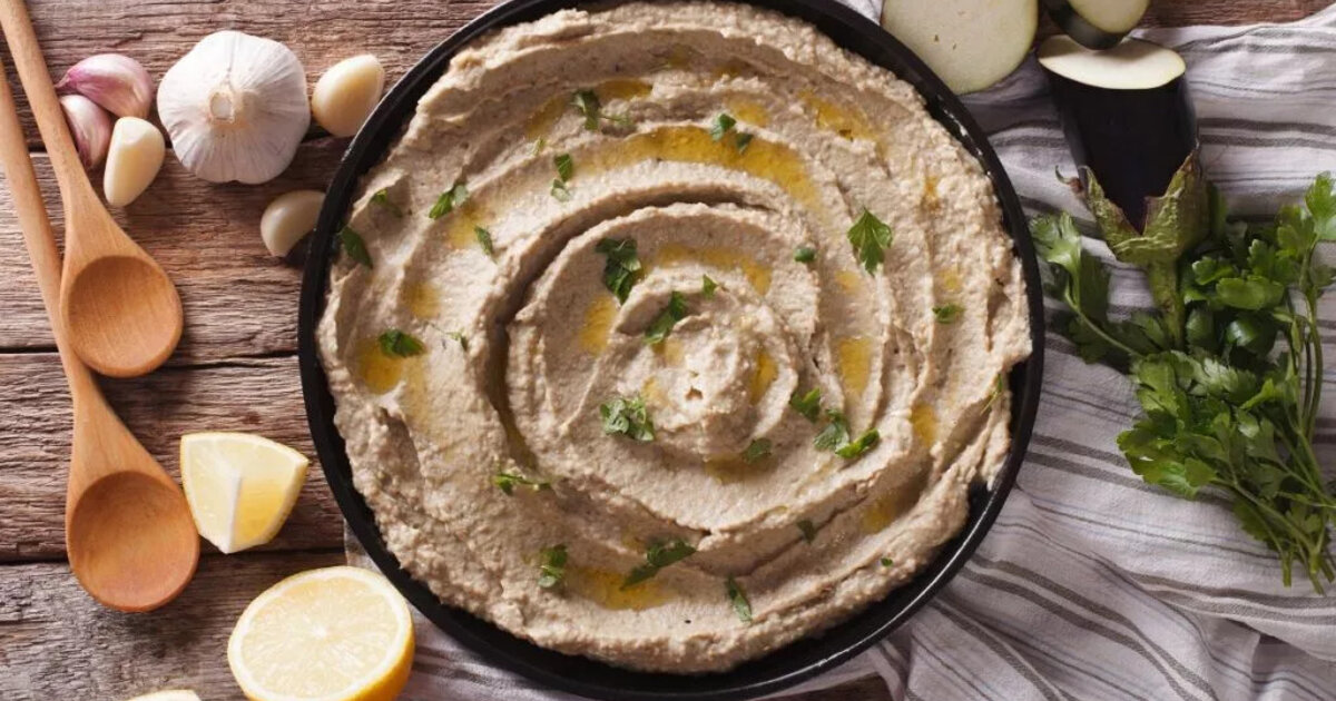Βάζουμε τις μελιτζάνες σε ένα ταψάκι αντικολλητικό και τις ψήνουμε σε καλά προθερμασμένο φούρνο στους 220°C μέχρι να μαλακώσουν. Εναλλακτικά, τις ψήνουμε στα κάρβουνα. Αφαιρούμε την ψημένη ψίχα με τη βοήθεια ενός κουταλιού και την αφήνουμε να στραγγίξει σε τρυπητό. Ψιλοκόβουμε τα λαχανικά και τα μυρωδικά μας και τα βάζουμε σε ένα μπολ.