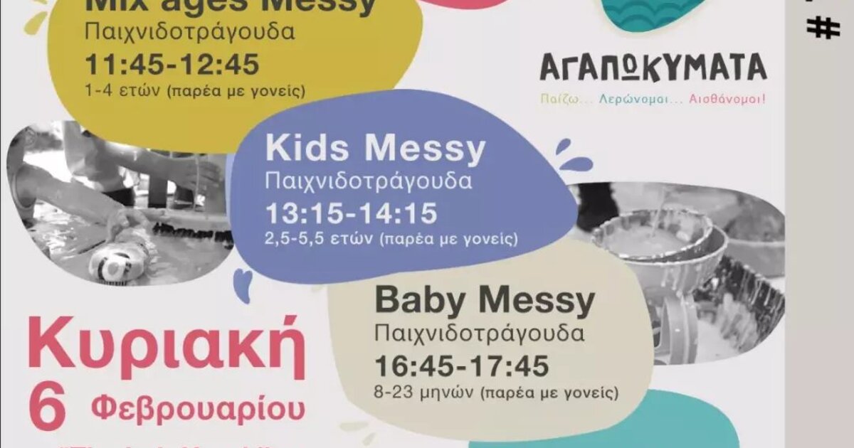 - Kids Messy Παιχνιδοτράγουδα 13:15-14:15/ 2,5-5,5 ετών