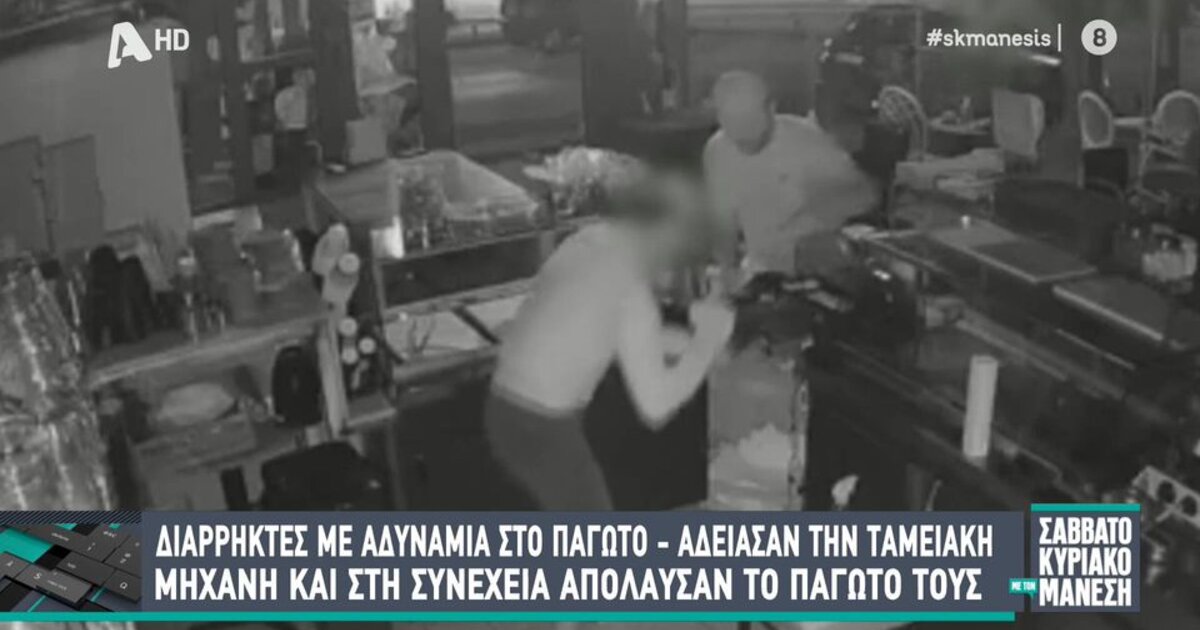 Συγκεκριμένα, σύμφωνα με το βίντεο δύο διαρρήκτες παραβιάζουν την πόρτα ζαχαροπλαστείου στην Περαία Θεσσαλονίκης, αδειάζοντας το ταμείο της επιχείρησης.