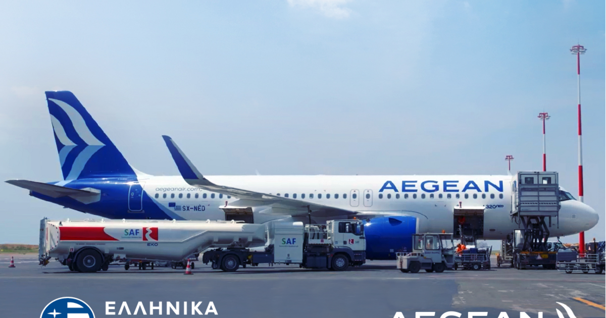 AEGEAN και ΕΛΛΗΝΙΚΑ ΠΕΤΡΕΛΑΙΑ κάνουν πράξη τις πρώτες πράσινες πτήσεις στην Ελλάδα με τη χρήση βιώσιμων αεροπορικών καυσίμων (SAF)