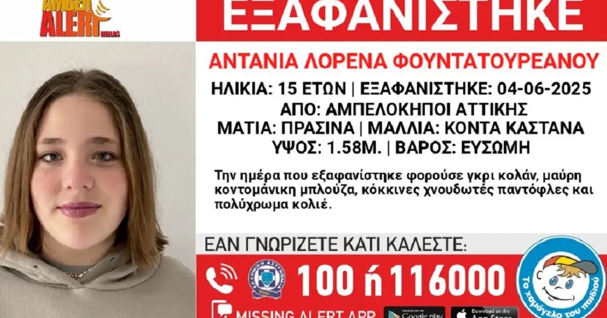 Στην ενεργοποίηση του μηχανισμού AMBER ALERT HELLAS, κατόπιν εισαγγελικής εντολής προχώρησε το «Χαμόγελο του Παιδιού» για την 15χρονη που εξαφανίστηκε από τους Αμπελόκηπους.