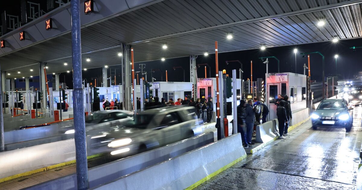 Οι αγρότες στα διόδια του Ωραιοκάστρου δεν σήκωσαν τις μπάρες, ωστόσο παρέμειναν εκεί και μοίρασαν όσπρια και κηπευτικά στους διερχόμενους οδηγούς.