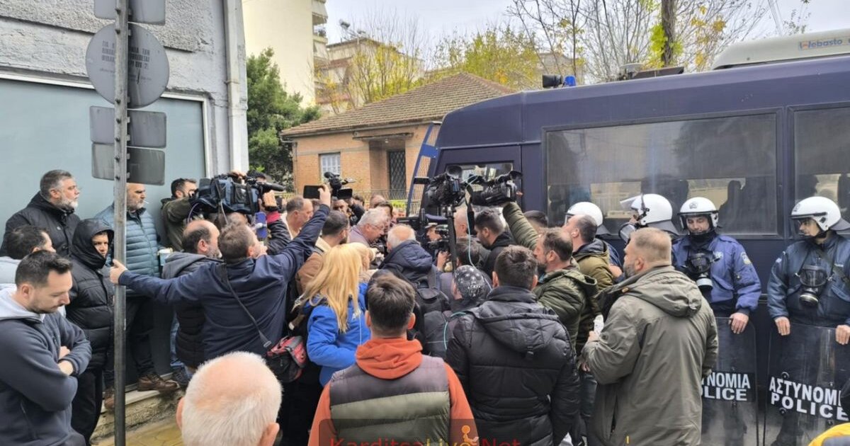 Οι αγρότες αντιδρούν έντονα από το γεγονός ότι η ΕΛ.ΑΣ. έχει παρατάξει έξω από το γραφείο του υπουργού αστυνομική κλούβα.