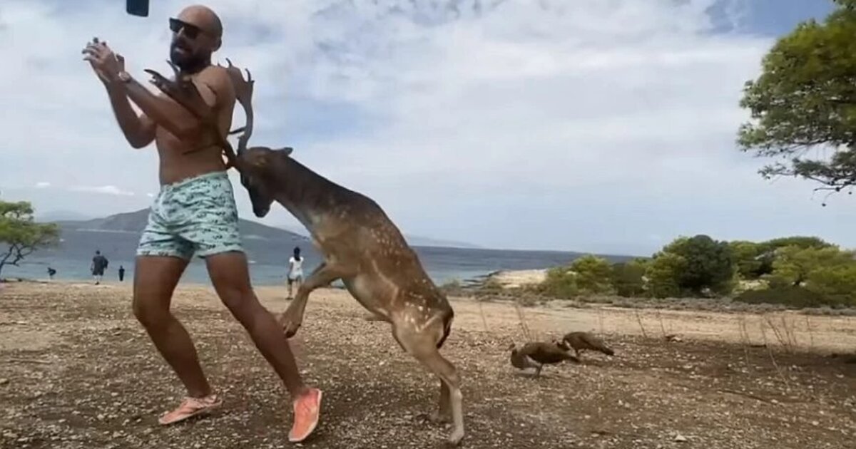 Ένας τουρίστας προσπάθησε να βγάλει μια φωτογραφία με ελάφι κατά τις διακοπές του στην Αίγινα αλλά κατέληξε στο νοσοκομείο.