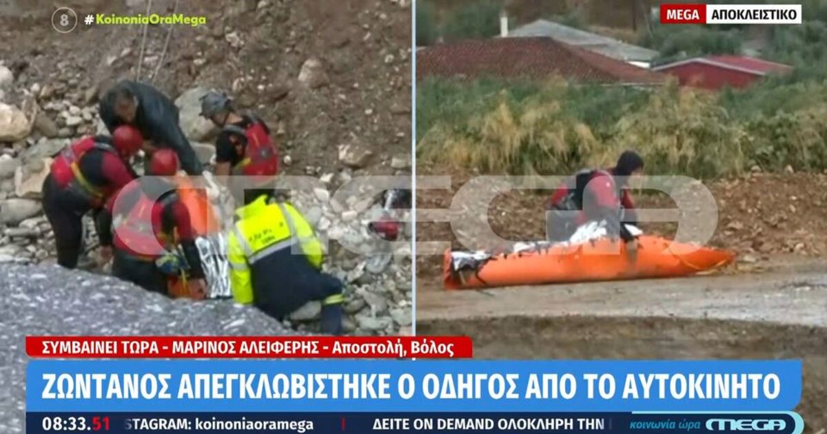 Όπως φαίνεται και στα πλάνα που παρουσίασε η εκπομπή του Mega «Κοινωνία Ώρα Mega» οι άνδρες της ΕΜΑΚ είχαν κατέβει κάτω στο αυτοκίνητο, το οποίο έχει αναποδογυρίσει και προσπαθούν να προσεγγίσουν τον οδηγό του οχήματος.