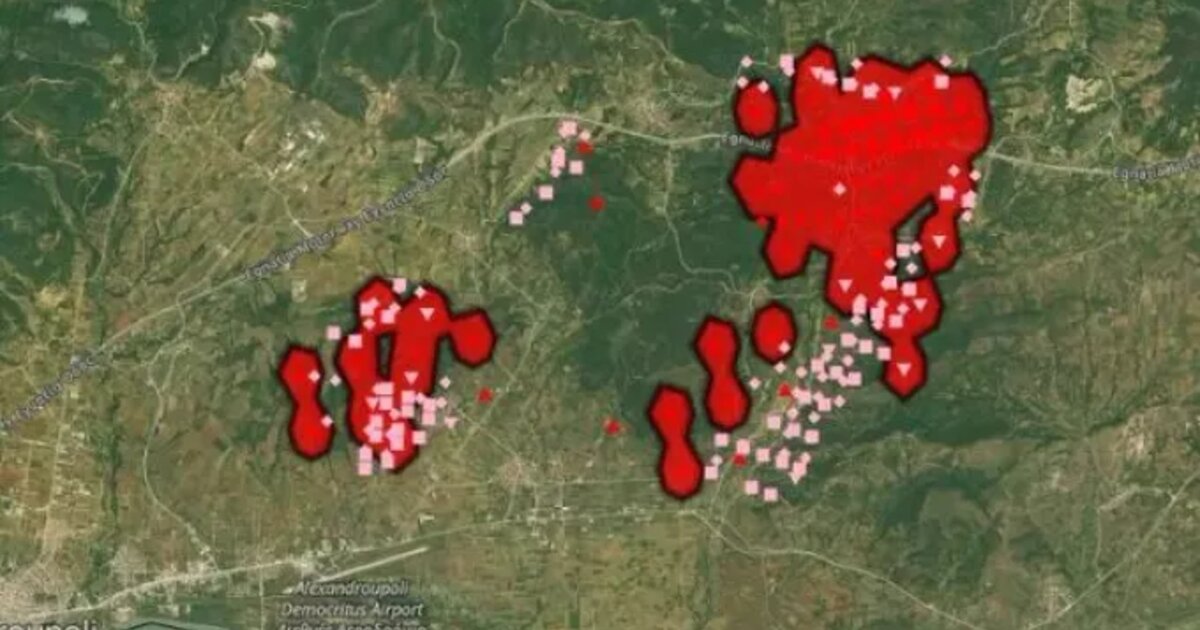 Δορυφορική εικόνα που αποτυπώνει το μέγεθος της καταστροφικής πυρκαγιάς που μαίνεται στην Aλεξανδρούπολη, απειλώντας οικισμούς και οδηγώντας σε εκκενώσεις, έδωσε στη δημοσιότητα η ευρωπαική υπηρεσίας διαχείρισης έκτακτης ανάγκης «Copernicus».