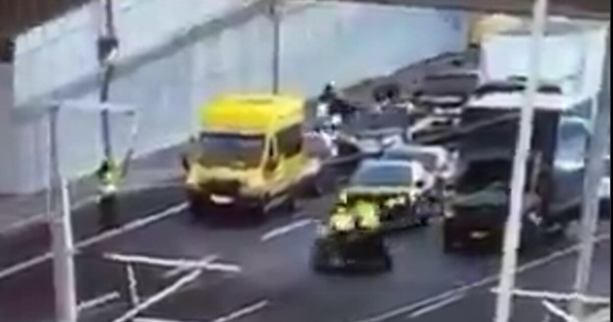 Συγκεκριμένα, όπως αποτυπώνεται και στο βίντεο που ακολουθεί, ενώ όλα τα οχήματα και τα δίκυκλα είχαν σταματήσει στο σήμα των τροχονόμων, αναβάτης μιας μηχανής όχι μόνο δεν ακινητοποίησε το δίκυκλο αλλά προσπάθησε και να περάσει.