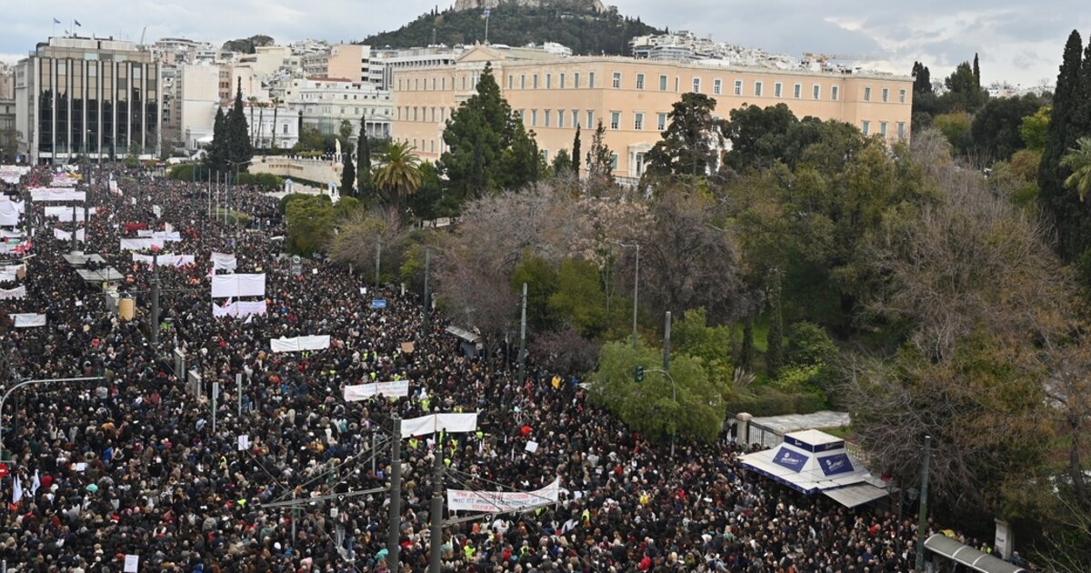 Ανατριχιάζει η ενός λεπτού σιγή στο Σύνταγμα για τα θύματα των Τεμπών.