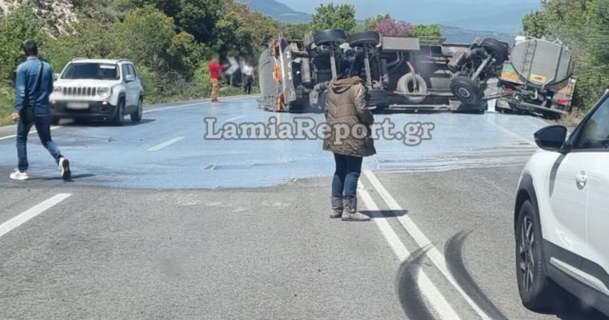 Ανατρoπή βυτιοφόρου στη Λαμία – Στο δρόμο χύθηκαν 17 τόνοι γάλα