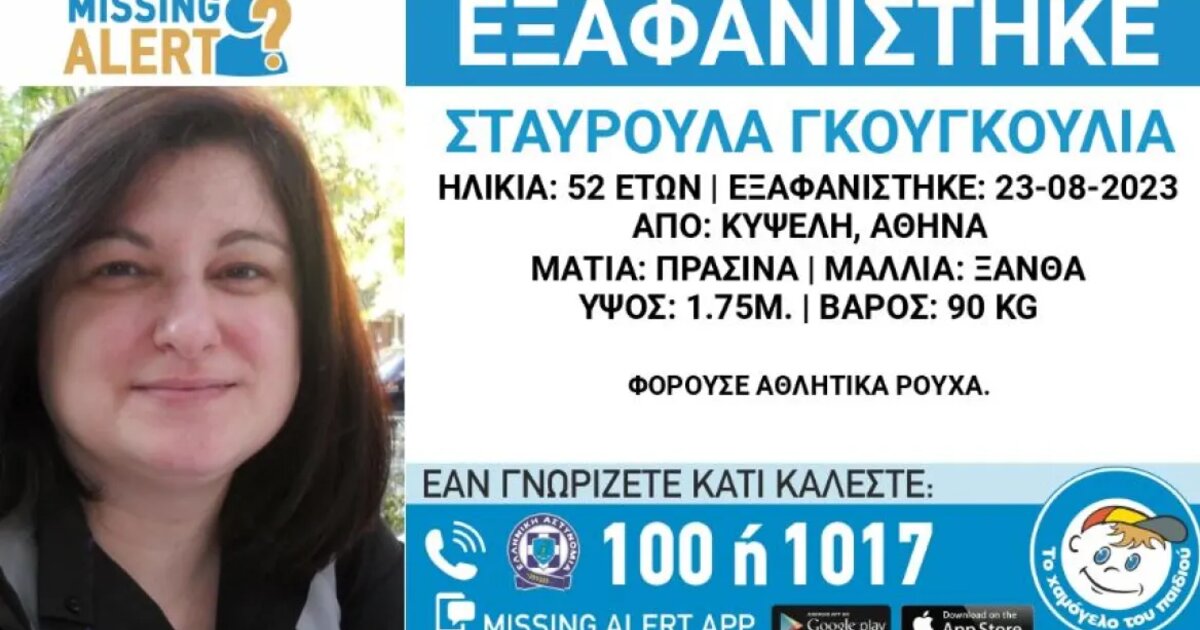 Η 53χρονη Σταυρούλα, εθεάθη για τελευταία φορά την Τετάρτη 23 Αυγούστου του 2023. Είχε πει στην συγκάτοικό της ότι θα πήγαινε για κάποιο επαγγελματικό ραντεβού. Δεν είχε αναφέρει όμως κάτι άλλο, μόνο πως θα κατευθυνόταν προς την πλατεία της Κυψέλης.