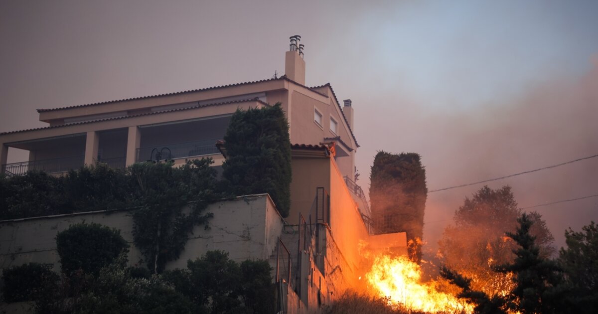 Ανεξέλεγκτα καίει η φωτιά στην Πεντέλη, με καμένα σπίτια και δεκάδες διάσπαρτες εστίες, που ενισχύονται από τους ισχυρούς ανέμους που πνέουν στην περιοχή.