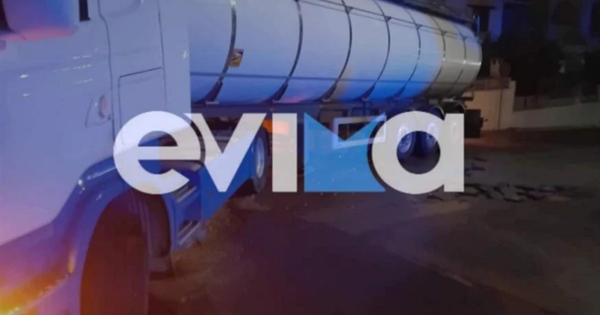 Ένα βυτιοφόρο εγκλωβίστηκε στην περιοχή Καράμπαμπας στη Χαλκίδα, καθώς διέσχιζε δρόμο, που είχε υποστεί καθίζηση.