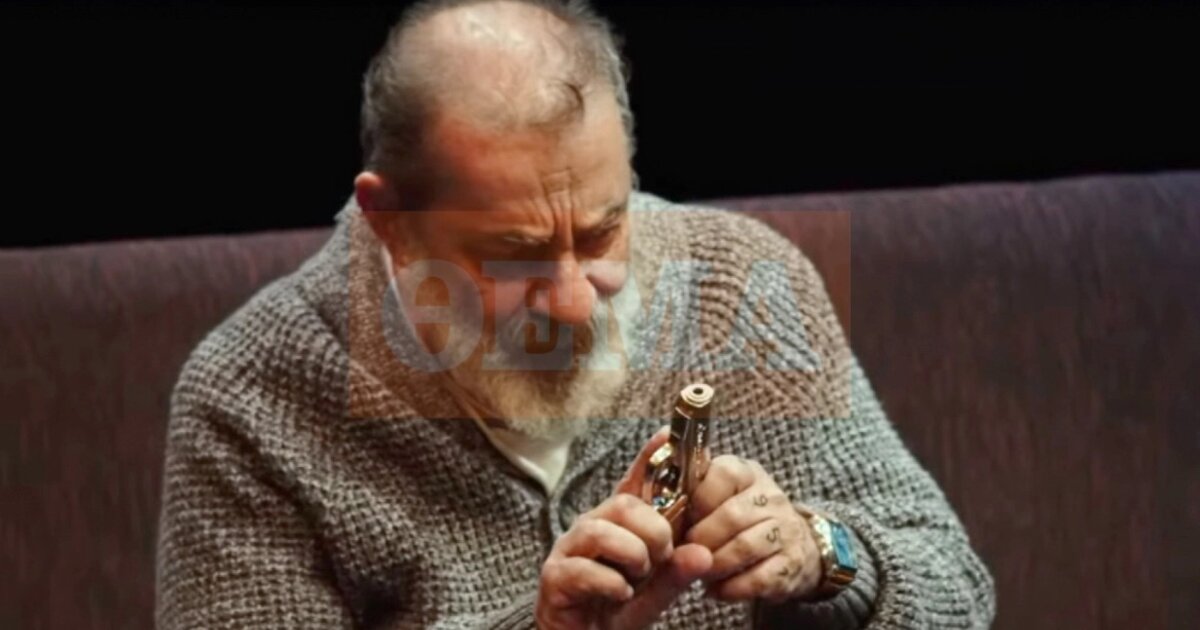 Στο μεταξύ αδιάψευστη απόδειξη των ισχυρισμών του ηθοποιού σχετικά με τους λόγους της αγοράς των όπλων κρότου και των πολυάριθμων φυσιγγίων που βρέθηκαν στο σπίτι του, αποτελούν οι φωτογραφίες που δημοσιεύει το protothema.gr στις οποίες φαίνεται ξεκάθαρα ο ίδιος αλλά και οι συμπρωταγωνιστές του, Θοδωρής Σκυφτούλης και Γιώργος Καφετζόπουλος – ο γιος του που κατά τραγική ειρωνεία και είναι και ο συγγραφέας του έργου - να χρησιμοποιούν επί σκηνής τα συγκεκριμένα πιστόλια. Και επειδή οι παραστάσεις ήταν πολλές, καθώς διήρκεσαν δύο χρόνια, χρειάζονταν και πολλά φυσίγγια.