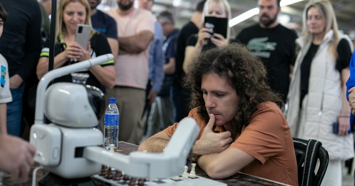 κεντρική φωτογραφία ο Πρωταθλητής Eλλάδας Ανδρών GM Kούρκουλος-Αρδίτης Σταμάτης παίζει εναντίον του ΑΙ ρομπότ