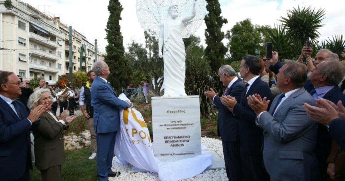 Με ένα άγαλμα-σύμβολο του Προμηθέα, το Επαγγελματικό Επιμελητήριο Αθηνών τίμησε τους μικρομεσαίους επιχειρηματίες και γιόρτασε τα 100 χρόνια από την ίδρυσή του.