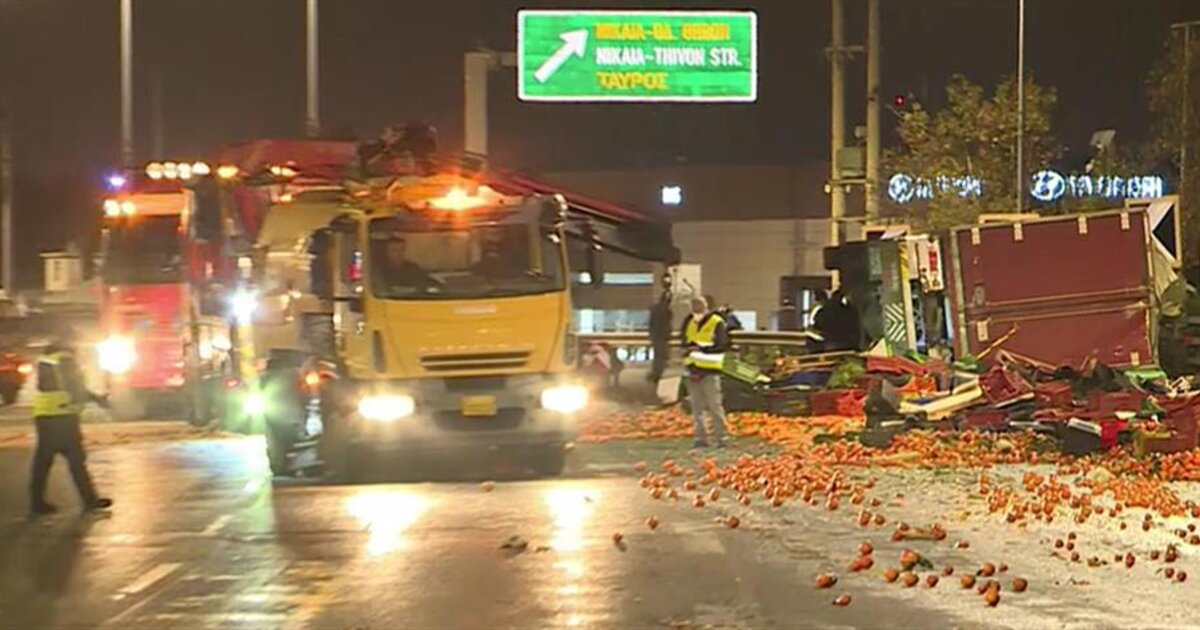 Το πρωί, λόγω ανατροπής νταλίκας που μετέφερε πορτοκάλια, προκλήθηκαν σοβαρά κυκλοφοριακά προβλήματα