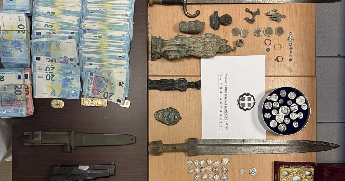Η υπόθεση αποκαλύφθηκε από αστυνομικούς της ασφάλειας Πάτρας που παρακολουθούσαν επί σχεδόν έναν χρόνο τα μέλη του κυκλώματος αρχαιοκαπηλίας και σήμερα Τρίτη έπειτα από ελέγχους που έγιναν σε σπίτια σε πόλεις της βόρειας Ελλάδας, εντοπίστηκαν νομίσματα, ξίφη και αγαλματίδια.