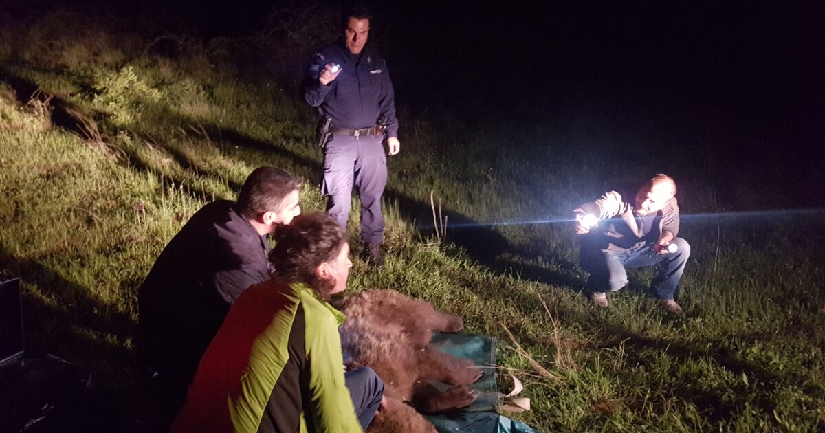 Κλιμάκιο ειδικών, στο πλαίσιο του πρωτοκόλλου για την αντιμετώπιση περιστατικών αλληλεπίδρασης ανθρώπου και αρκούδας, προσέγγισε το ζώο και το νάρκωσε. Διαπίστωσαν μάλιστα, όπως αναφέρεται και σε σχετική ανακοίνωση από την «Καλλιστώ», ότι κατά τη διάρκεια του εγκλωβισμού του, το άτυχο ζώο είχε στρεσαριστεί και μασούσε τον κορμό του δέντρου όπου είχε εγκατασταθεί η θηλιά, στην προσπάθειά του να διαφύγει.