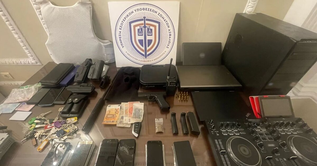 κουκούλα τύπου full face, μεταλλική ράβδος και ασύρματος, γεμιστήρας φυσιγγίων, -12- φυσίγγια και κάλυκας φυσιγγίου των 9mm, νάιλον σακουλάκι με φυτικά αποσπάσματα κάνναβης, βάρους 1,8 γραμμαρίων, -8- μπρελόκ με συνολικά -23- κλειδιά, -8- κινητά τηλέφωνα και -2- φορητοί ηλεκτρονικοί υπολογιστές, μονάδες σταθερών ηλεκτρονικών υπολογιστών, διάφορες ηλεκτρονικές συσκευές, δελτίο ταυτότητας και άδεια οδήγησης, τσαντάκι εντός του οποίου υπήρχε τραπεζική κάρτα, κουτί με κόσμημα χρυσής απόχρωσης, κομμάτι πλαστικού, με ενσωματωμένα δύο κλειδιά και μια ετικέτα, νάιλον σακουλάκι που περιείχε χάπια, χαρτονομίσματα ξένων χωρών και αυτοκίνητο και μοτοσικλέτα, ως μέσα τέλεσης αξιόποινων πράξεων.
