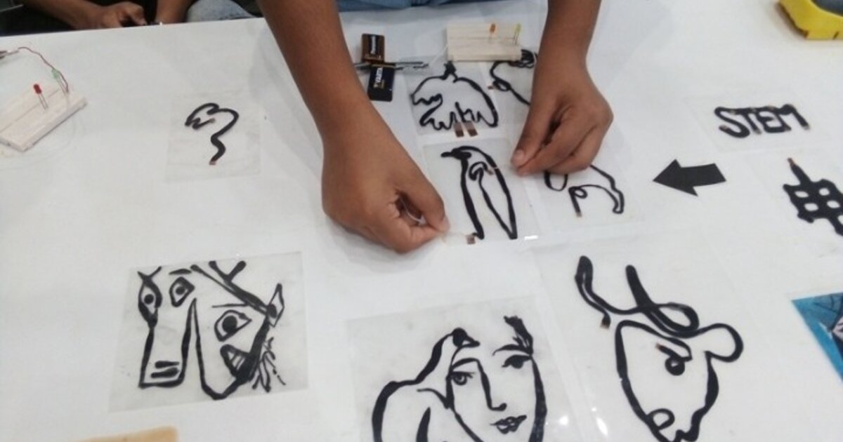 Οι δύο μαθητές ανέμειξαν πλαστελίνη με σκόνη άνθρακα για να την κάνουν αγώγιμη και με αυτήν έφτιαξαν μερικές από τις πιο γνωστές ασπρόμαυρες μορφές του Πικάσο. Στη συνέχεια χρησιμοποίησαν απλά, ανακυκλώσιμα υλικά για να κατασκευάσουν αντιστάτες και να δημιουργήσουν ένα ηλεκτρικό κύκλωμα. Πρόκειται για ένα πείραμα που τα παιδιά το δουλεύουν ήδη από τον Μάιο και καθ' όλη τη διάρκεια του καλοκαιριού με την καθοδήγηση του υπευθύνου του ΕΚΦΕ.