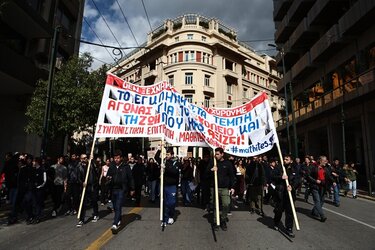 Σε εξέλιξη βρίσκεται το μαθητικό και φοιτητικό συλλαλητήριο στο κέντρο της Αθήνας, για τα τρία χρόνια που συμπληρώνονται σε δύο ημέρες, από το σιδηροδρομικό δυστύχημα στα Τέμπη.