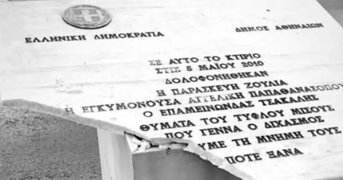 Βανδάλισαν την πλακέτα για τα θύματα της Marfin - Το μήνυμα Σκέρτσου