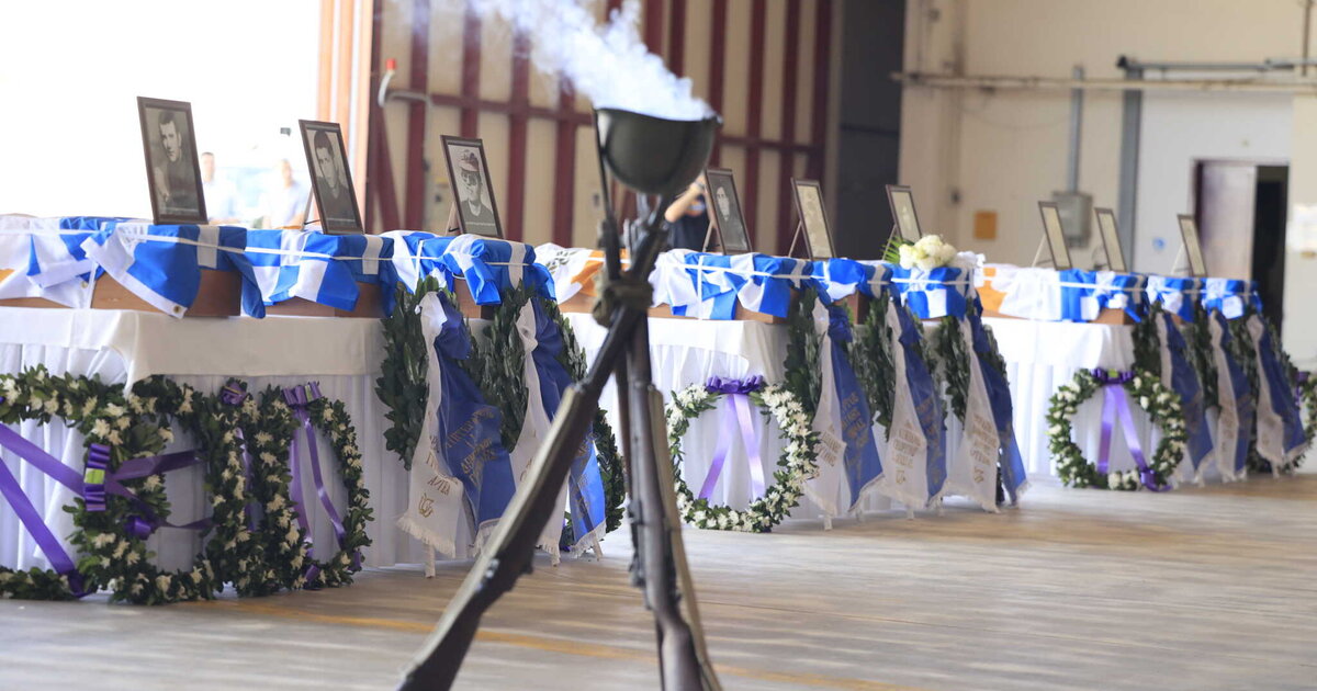Η τελετή, έγινε παρουσία του Υπουργού Εθνικής Άμυνας, Νίκου Δένδια. Τα λείψανα των ηρώων επέστρεψαν στην Ελλάδα από την Κύπρο με C-130 της Πολεμικής Αεροπορίας.