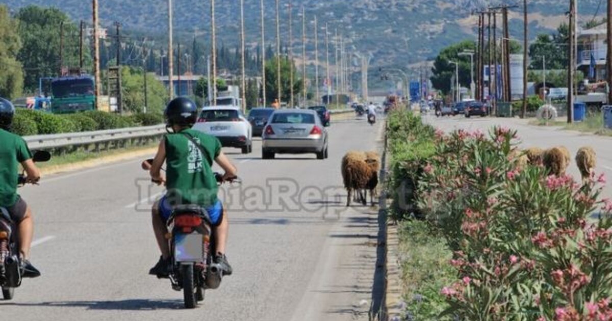 Βουκολικό τοπίο θύμιζε, το πρωί, η αρχή της εθνικής οδού Λαμίας - Αθηνών και ο παράδρομος, όταν κοπάδι από πρόβατα έκανε… κατάληψη του οδοστρώματος!