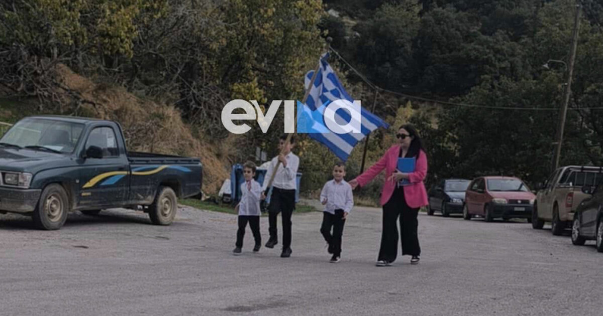 Βίντεο: Δύο μαθητές και μια δασκάλα έκαναν παρέλαση σε χωριό της Καρύστου