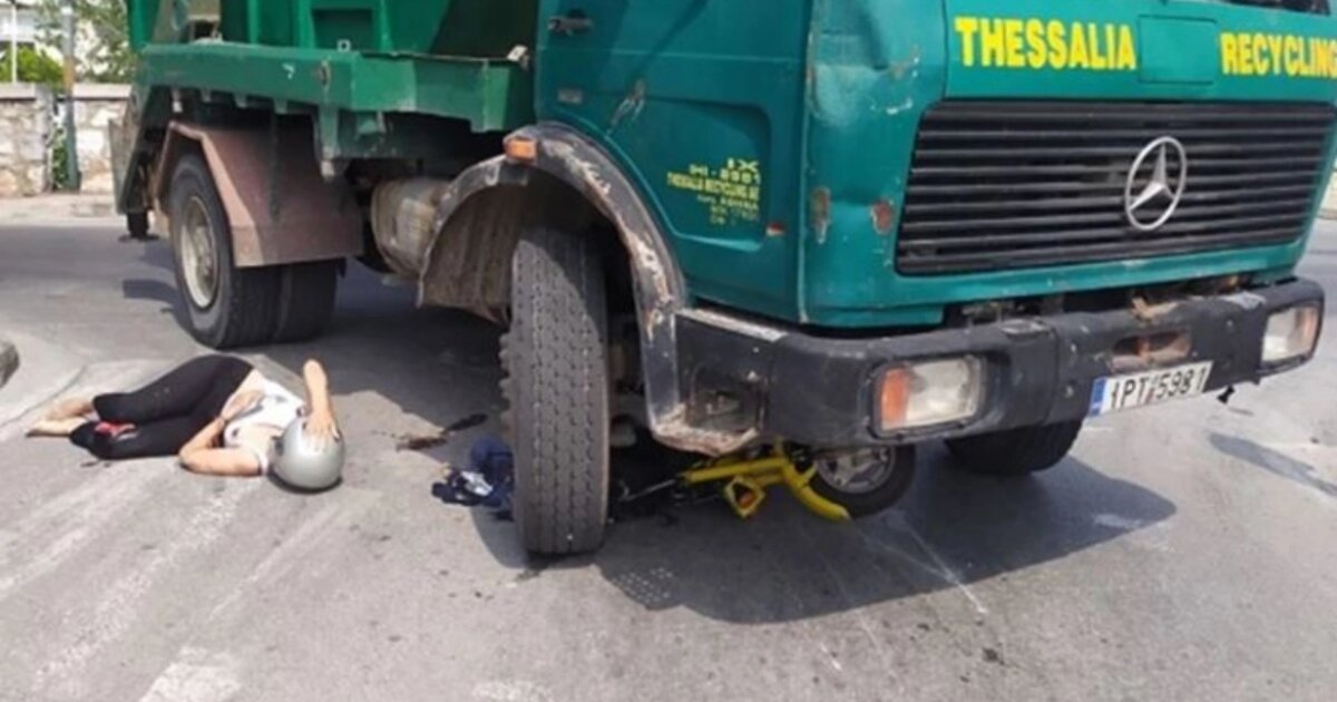 Όσοι βγήκαν έξω από τα καταστήματά τους, σύμφωνα με το taxydromos, είδαν ένα φορτηγό να παρασέρνει κάτω από τις ρόδες του δικυκλίστρια με τον οδηγό του να μην το έχει καταλάβει.