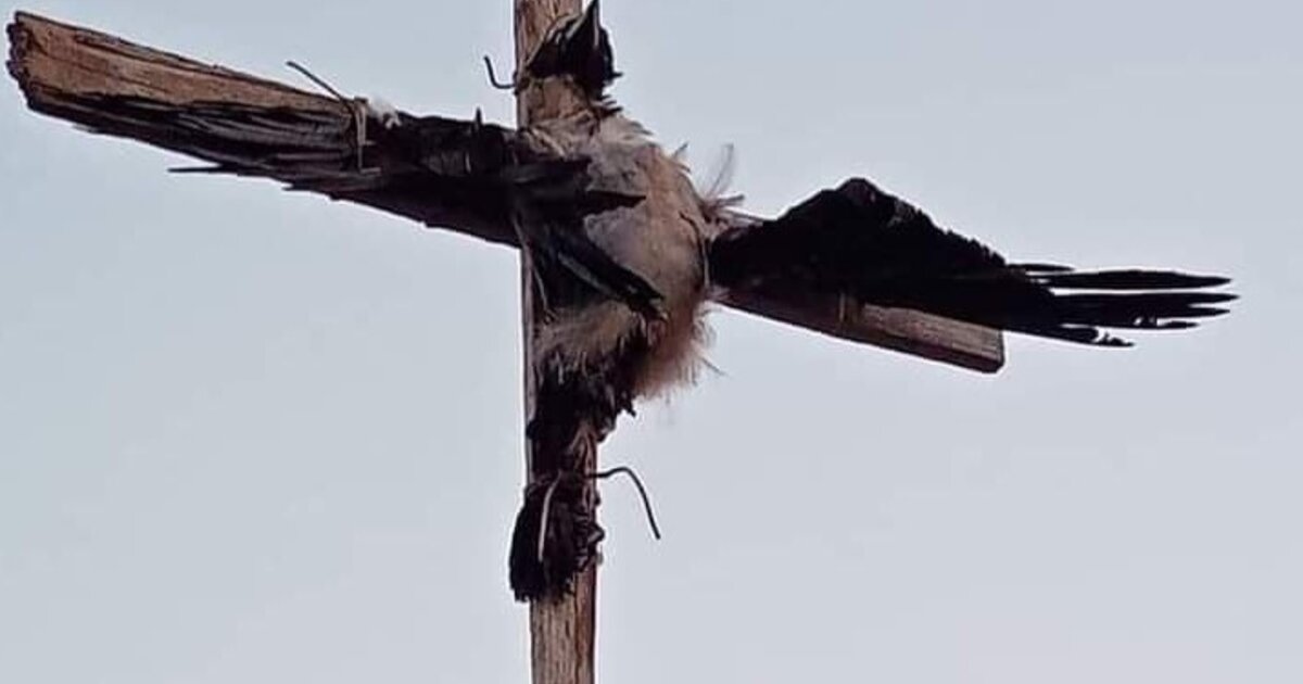 «Στην Πούντα της Πάρου σταύρωσαν ένα κοράκι και το άφησαν σε δημόσια θέα κι εγώ κάθε μέρα ντρέπομαι όλο και πιο πολύ για το είδος μας» έγραψε ο Πέτρος Κατσάκος που αναδημοσίευσε τη φωτογραφία.