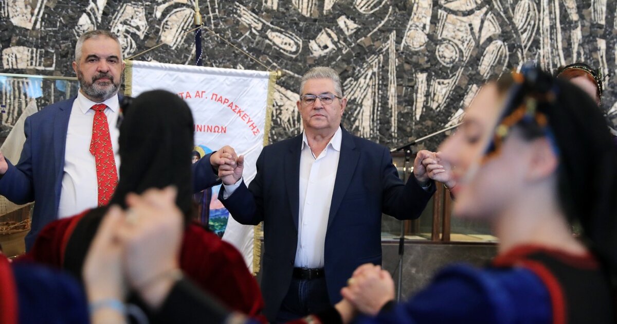 Ο Δημήτρης Κουτσούμπας αφού καλωσόρισε και αντάλλαξε ευχές και δώρα με το Διοικητικό Συμβούλιο και την χορωδία του Συλλόγου, σημείωσε: