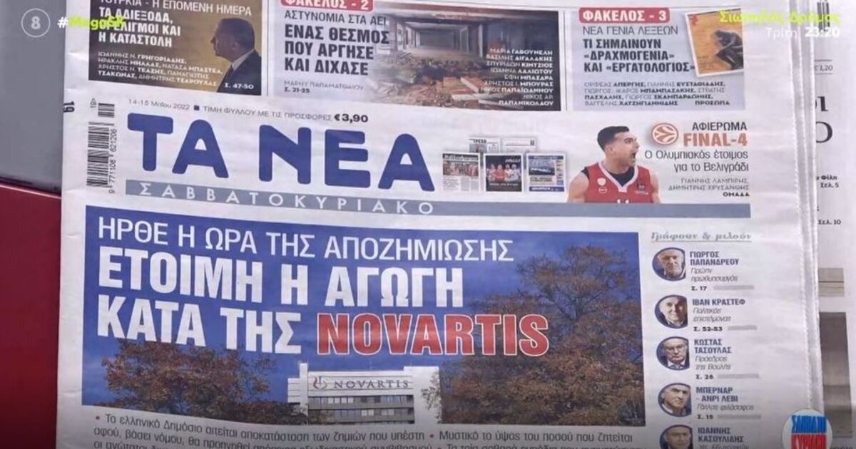 ΤΑ ΝΕΑ ΣΑΒΒΑΤΟΚΥΡΙΑΚΟ: ΕΤΟΙΜΗ Η ΑΓΩΓΗ ΚΑΤΑ ΤΗΣ NOVARTIS