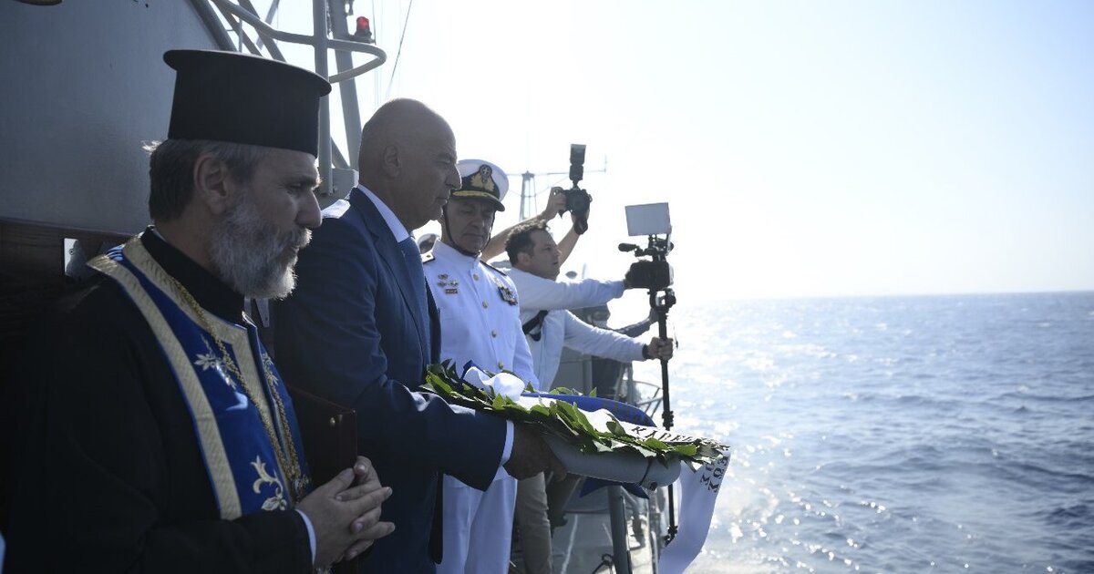 Δένδιας: Επιμνημόσυνη δέηση και ρίψη στεφάνου για τους πεσόντες του «Έλλη»