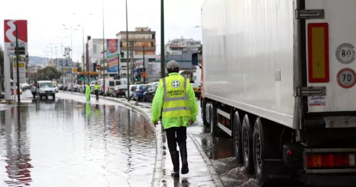 Σύμφωνα με την τροχαία, λόγω συσσώρευσης υδάτων υπάρχει διακοπή της κυκλοφορίας των οχημάτων στην Πειραιώς, από το ύψος της Πέτρου Ράλλη προς Πειραιά, και από το ύψος της οδού Χαμοστέρνας προς Αθήνα.