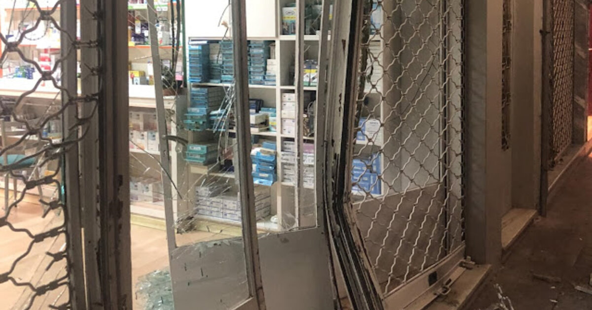Σύμφωνα με βίντεο που έχει καταγράψει τους δράστες, οι οποίοι φορούσαν κουκούλες, εμβόλισαν επανειλημμένες φορές με κλεμμένο αγροτικό αυτοκίνητο να καταστρέψουν την πρόσοψη του φαρμακείου, όπου στο τέλος έριξαν τα προστατευτικά ρολά και έσπασαν τη τζαμαρία.