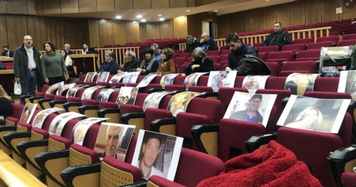 Φωτογραφίες των θυμάτων της πυρκαγιάς στο Μάτι, τοποθετήθηκαν στα άδεια καθίσματα του δικαστηρίου