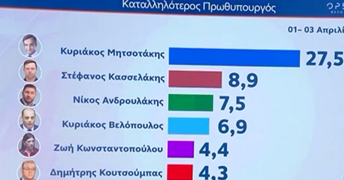 Κυριαρχία της ΝΔ καταγράφηκε στη νέα δημοσκόπηση της MRB για τις ευρωεκλογές του Ιουνίου, η οποία διαγράφει διπλάσιο ποσοστό από τον ΣΥΡΙΖΑ.