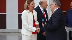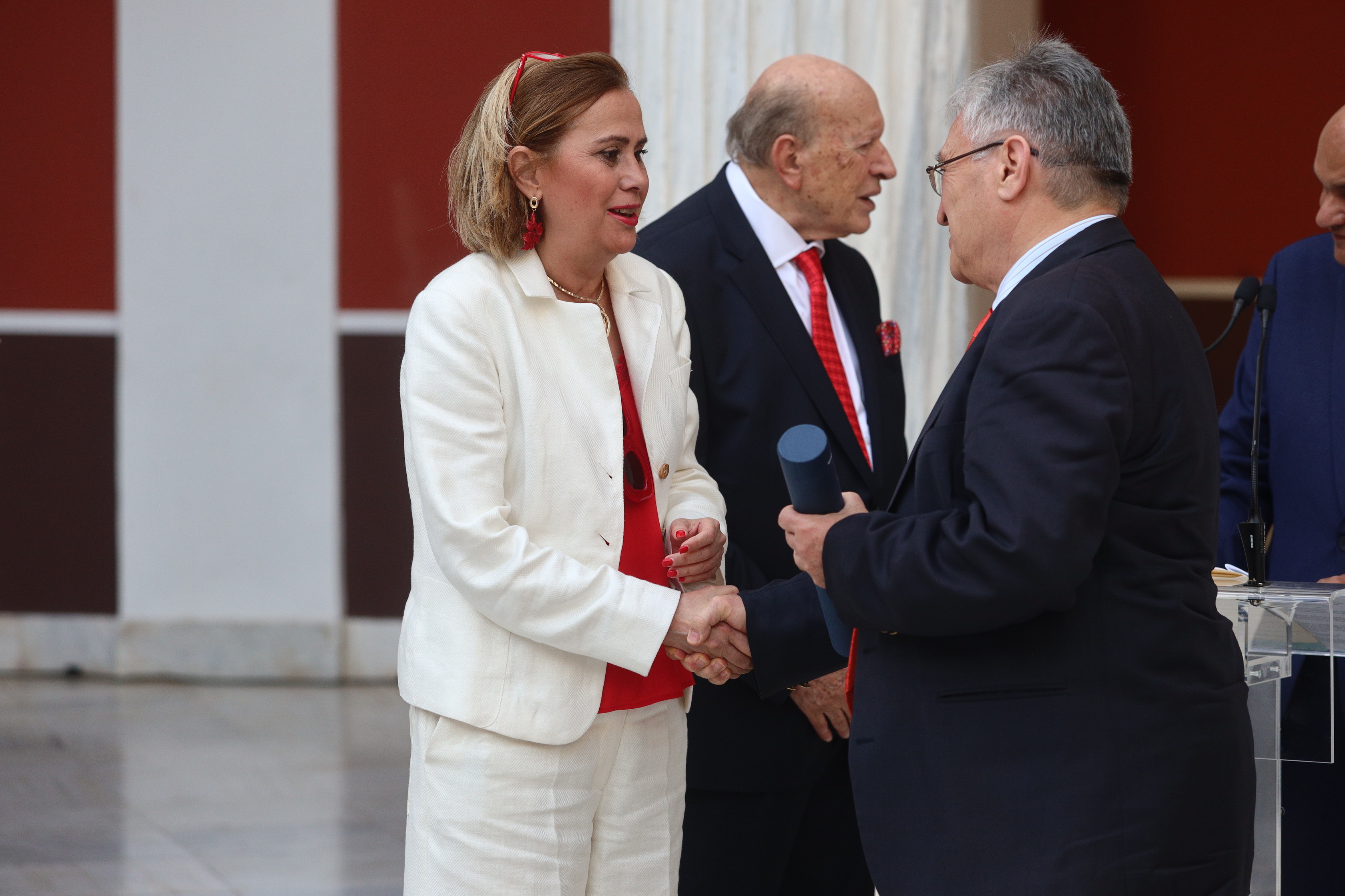 Πραγματοποιήθηκε η 38η απονομή των δημοσιογραφικών βραβείων και τιμητικών διακρίσεων του Ιδρύματος Προαγωγής Δημοσιογραφίας Αθ. Β. Μπότση υπό την παρουσία της Προέδρου της Δημοκρατίας, Κατερίνας Σακελλαροπούλου, στο αίθριο του Ζαππείου Μεγάρου.