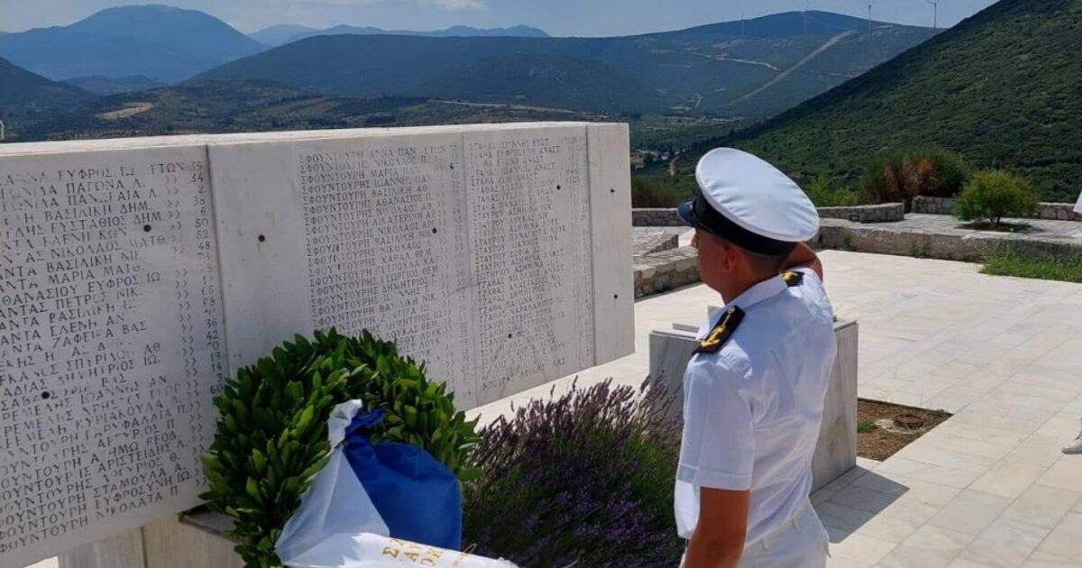 Στο μαυσωλείο του Διστόμου, παρουσία εκπροσώπων της δημοτικής Αρχής, έγινε κατάθεση στεφάνου από τον επικεφαλής του κλιμακίου της Σχολής Ναυτικών Δοκίμων