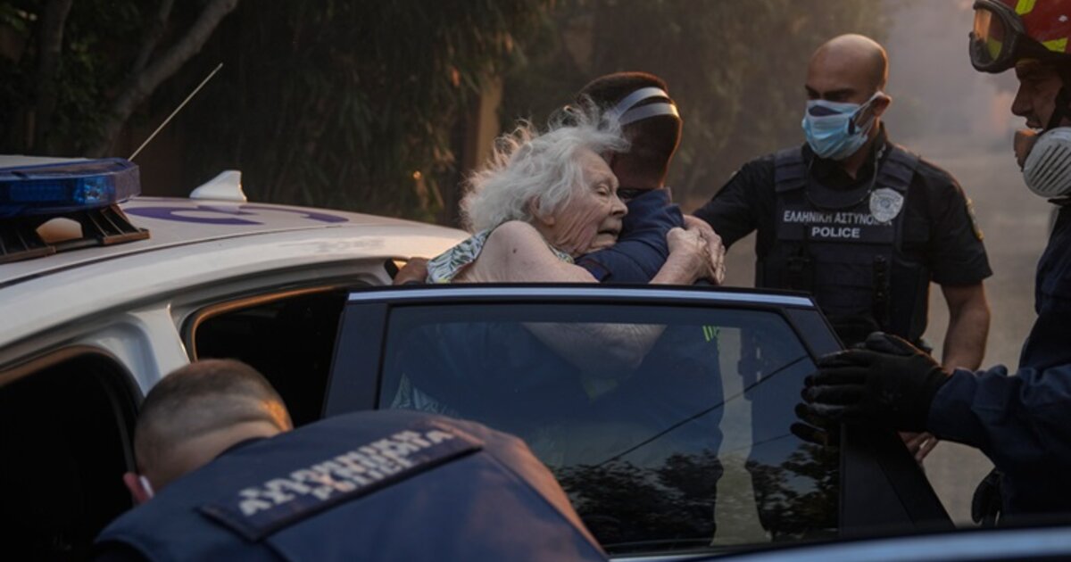 Στο Ντράφι, στη συμβολή των οδών Παπαδιαμάντη και Καβάφη, οι αστυνομικοί της Άμεσης Δράσης προχώρησαν σε τουλάχιστον 15 απεγκλωβισμούς ηλικιωμένων ενώ τα οχήματα της ΕΛ.ΑΣ. περνούσαν μέσα από τις φλόγες.